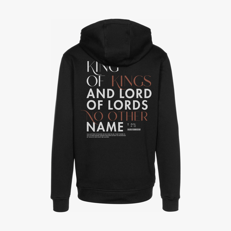 Moletom Guardian – KING OF KINGS Moletom cristão com capuz – estampa “King of Kings” nas costas e frente minimalista. Com modelagem unissex, capuz ajustável com cordão, bolso canguru, tagless em silk screen e acabamento premium. Produzido em 100% algodão de alta qualidade para proporcionar conforto, caimento moderno e durabilidade. A Estampa A declaração que atravessa o tempo: “King of Kings and Lord of Lords. No other name.” Inspirado em Atos 4:12, este moletom é uma proclamação de que não há outro nome pelo qual possamos ser salvos. Jesus é o soberano absoluto — sobre tudo, sobre todos. Rei dos reis. Senhor dos senhores. "Salvação não se encontra em nenhum outro, pois não há nenhum outro nome dado entre os homens pelo qual devamos ser salvos." A arte tipográfica destaca essa soberania com ousadia e reverência. Uma afirmação de fé. Uma bandeira no peito e nas costas. Produção Consciente Impressão em DTF de alta definição, com toque suave e fidelidade visual. Processo sustentável e pensado para durar — como a verdade que carrega. Significado Mais que vestuário, é declaração. É identidade. É adoração. Este moletom é para aqueles que vivem e proclamam que Jesus reina — sobre os tronos da Terra e sobre o coração dos homens. Vista fé. Vista coragem. Proclame o Nome acima de todo nome.