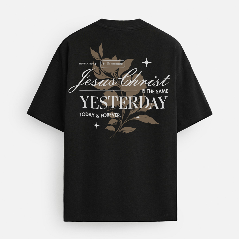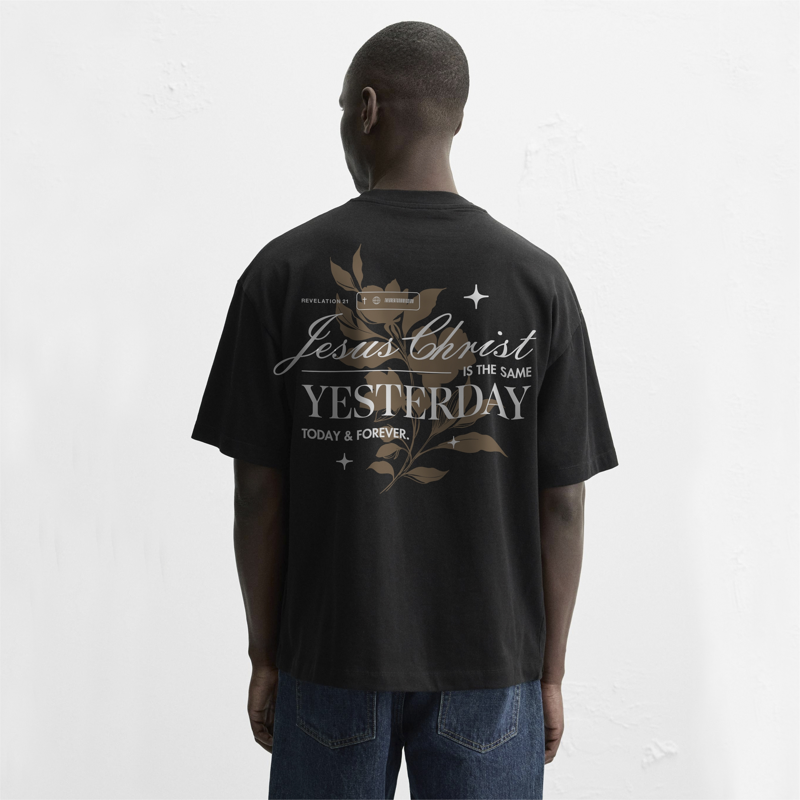 ✝️ Camiseta Oversized – YESTERDAY Mais do que um versículo, uma rocha eterna. A camiseta “YESTERDAY” declara com firmeza a verdade imutável de Hebreus 13:8: “JESUS CHRIST IS THE SAME YESTERDAY, TODAY AND FOREVER.” Com design refinado, tipografia marcante e elementos gráficos que unem o sagrado ao contemporâneo, essa peça é mais do que moda — é uma proclamação. Um lembrete visual para o mundo: A Verdade não muda. A Esperança não falha. Jesus permanece. VISTA SUA FÉ. PROCLAME A ETERNIDADE. Seja o reflexo d’Aquele que nunca muda. Modelagem oversized premium em Heavy Cotton, com caimento perfeito e acabamento de alto padrão.