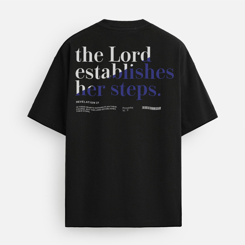 ✝️ Camiseta Oversized – THE LORD ESTABLISHES HER STEPS Mais do que estilo, um lembrete de propósito. A camiseta “THE LORD ESTABLISHES HER STEPS” é baseada em Provérbios 16:9 e traz em sua essência a certeza de que, mesmo com planos humanos, é o Senhor quem guia nossos caminhos: “IN THEIR HEARTS HUMANS PLAN THEIR COURSE, BUT THE LORD ESTABLISHES THEIR STEPS.” (PROVERBS 16:9) Um design poderoso, com tipografia contemporânea que destaca a soberania divina em cada passo. Essa peça é mais do que moda — é fé em movimento. Uma declaração silenciosa, mas firme: quem caminha com Deus, nunca está perdido. VISTA SUA FÉ. CAMINHE COM PROPÓSITO. CONFIE NOS PASSOS QUE ELE ESTABELECE. Modelagem oversized premium em Heavy Cotton com acabamento refinado.