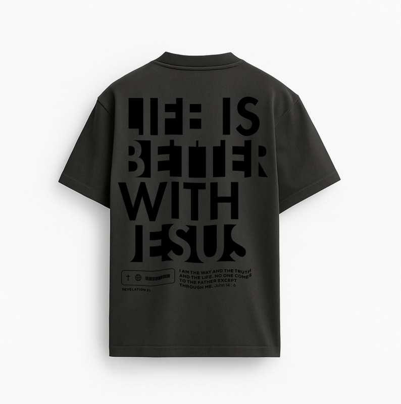Camiseta Oversized – LIFE IS BETTER WITH JESUS ✝️ Muito mais que estilo, um manifesto de fé. A camiseta “LIFE IS BETTER WITH JESUS” foi criada para quem entende que viver com Jesus não é apenas uma escolha espiritual — é a melhor forma de viver. A frase marcante estampa o coração da peça com força e clareza, reafirmando uma verdade que transforma: a vida com Cristo é mais leve, mais plena, mais verdadeira. Inspirada em João 14:6 — “Eu sou o caminho, a verdade e a vida. Ninguém vem ao Pai, a não ser por mim.” — essa peça traz na sua essência a certeza de que Jesus é o centro, a fonte e o destino. Seja no cotidiano ou nos momentos de batalha, essa camiseta te lembra que: Com Jesus, há direção. Com Jesus, há propósito. Com Jesus, há vida. Modelagem oversized premium, confeccionada em Heavy Cotton com toque macio e caimento impecável. Ideal para quem carrega a mensagem com autenticidade e atitude. Use com fé. Viva com propósito. Seja luz por onde passar.