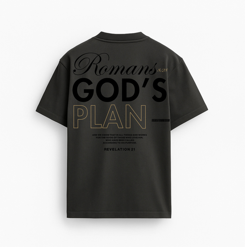 ✝️ Camiseta Oversized – GOD’S PLAN Mais do que design, uma declaração de fé. A camiseta “GOD’S PLAN” estampa com força a promessa eterna de Romanos 8:28: “Todas as coisas cooperam para o bem daqueles que amam a Deus, dos que são chamados segundo o Seu propósito.” Com tipografia marcante e composição elegante, a peça traduz o propósito divino em forma de arte. A fusão entre o moderno e o espiritual transforma essa camiseta em um lembrete diário: Deus tem um plano. E Ele é perfeito. VISTA O PROPÓSITO. REVELE O PLANO. Seja reflexo da confiança na soberania de Deus, mesmo quando os caminhos parecem incertos. Porque tudo coopera. Sempre. Modelagem oversized premium em Heavy Cotton com acabamento refinado.